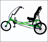 The Cricket is a recumbent tricycle designed for active people with a small handicap.
